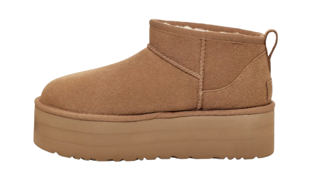 Az UGG Ultra Mini Platform Chestnut a klasszikus UGG dizájn modern újragondolása. Az alacsony szárú fazon és a megemelt platformtalp trendi megjelenést biztosít, miközben a márkára jellemző páratlan kényelmet nyújtja. Tökéletes választás a hűvösebb napokra, városi viselethez és hétköznapi outfitekhez.